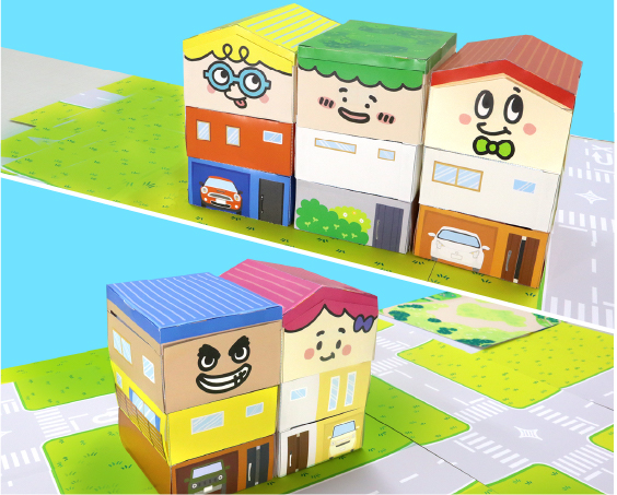 家をたてる疑似体験ができるコンテンツ「住む家と家族になろう!たてようマイホーム」では、ペーパークラフトで3階建ての家をたてることができます。家の名前や性格を考えたり、部屋割りも好きにクリエイト!プリふれでは、子どもたちの「遊ぶ楽しさ」「学びへの好奇心」をお手伝いするコンテンツを多数ご用意しています。