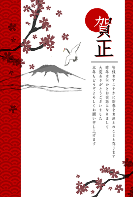 BV0243「賀正_桜舞う富士に鶴」 年賀状・喪中はがきカテゴリーのプリントコンテンツです。