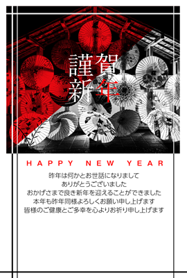 BV0244「謹賀新年_和傘写真」 年賀状・喪中はがきカテゴリーのプリントコンテンツです。