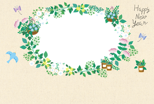 PH0080「青い鳥とお花たち_楕円」-photo- 年賀状・喪中はがきカテゴリーのプリントコンテンツです。