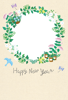 PV0176「青い鳥とお花たち_丸2」-photo- 年賀状・喪中はがきカテゴリーのプリントコンテンツです。